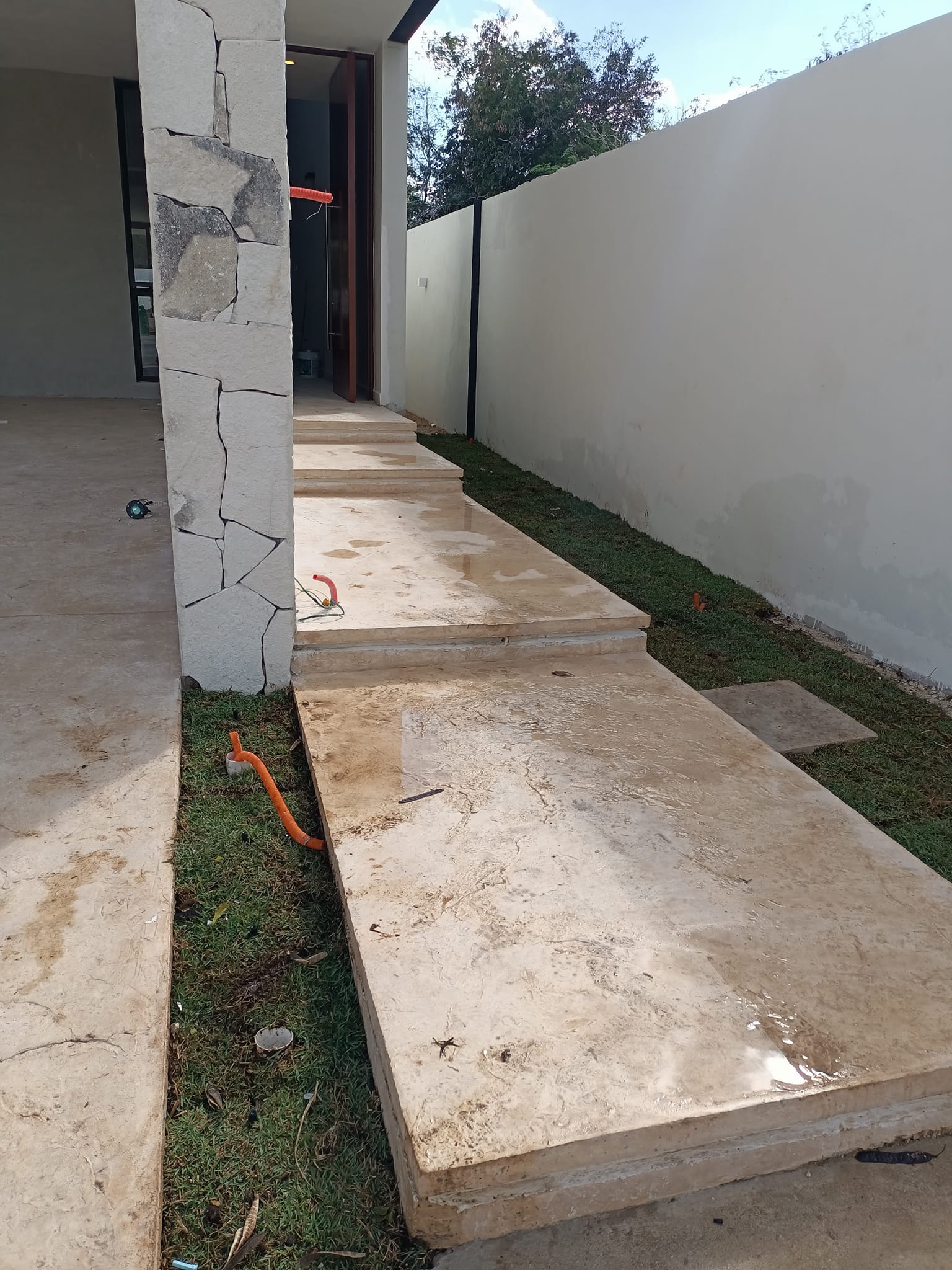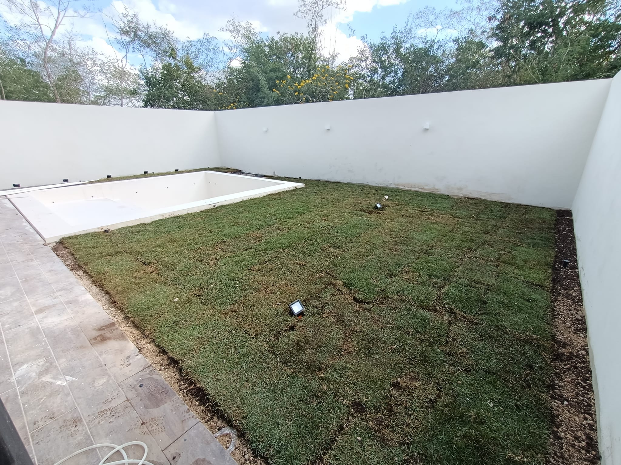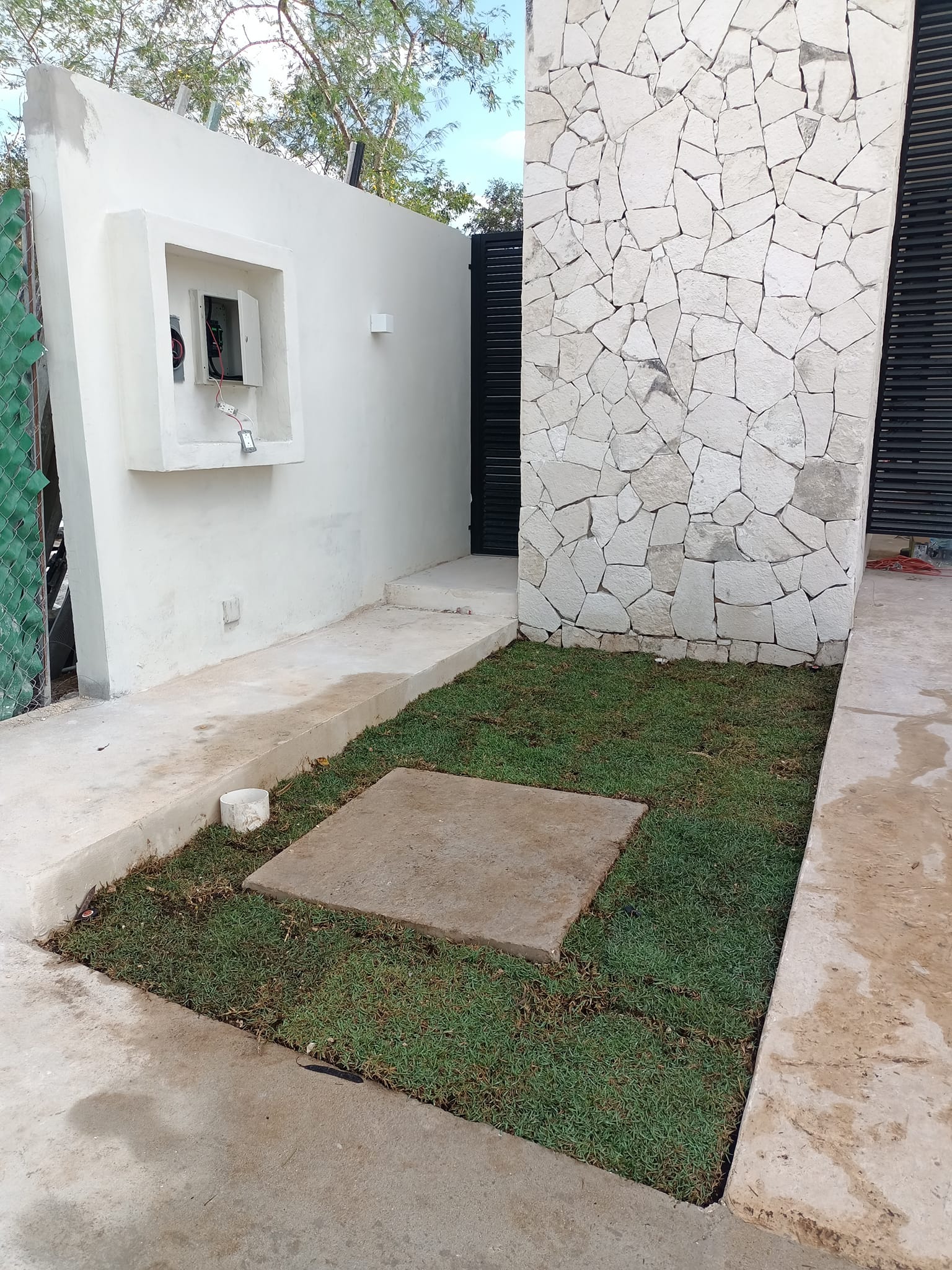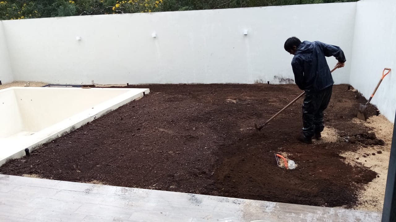 Instalación de sistema de riego en casa en la privada Tamara, en el norte de Mérida Yucatán. limpieza previa del terreno, instalación de termporizador digital. Colocación de tierra abonada y pasto zoysia matrella.